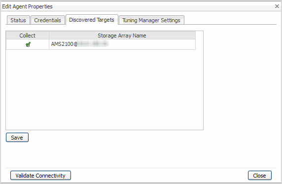 The Discovered Targets tab shows the storage devices that are collected through a management resource. The following tabs are provided: