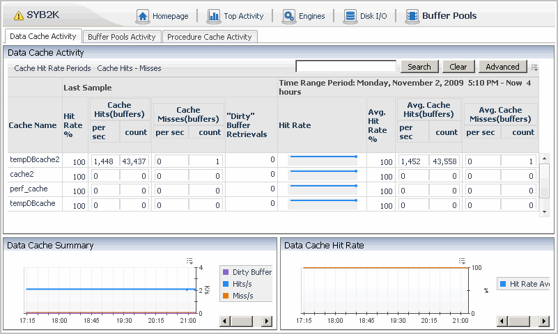 This table includes two Data Cache Activity Buttons, which provide a simple way to find peaks times.
