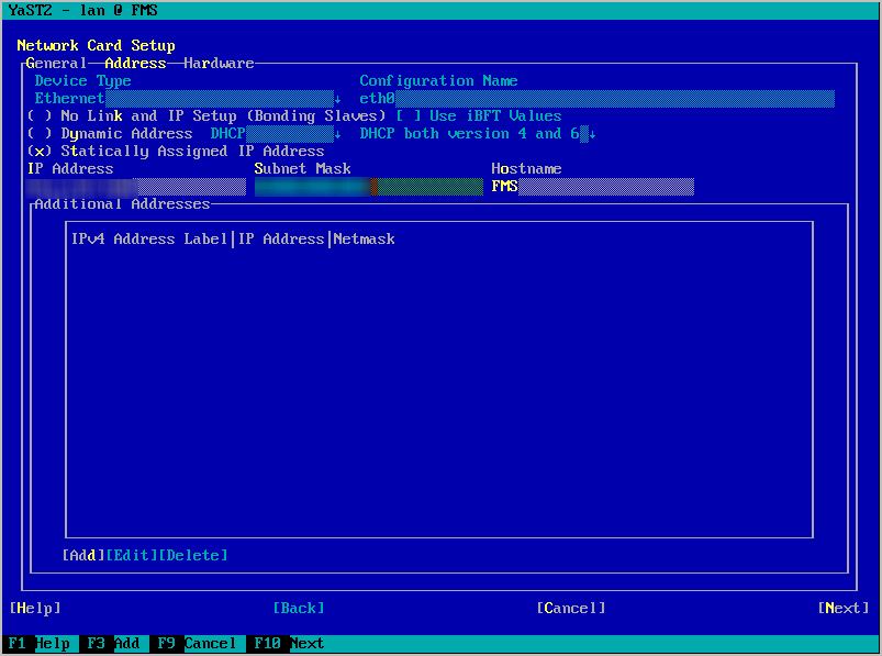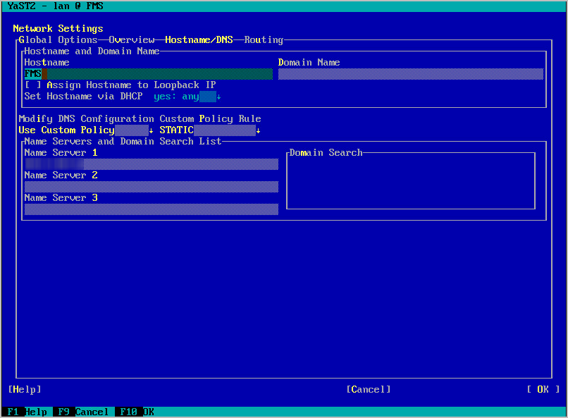If DHCP does not provide IPs for the FMS and DBS VMs, edit the network settings in the OS.