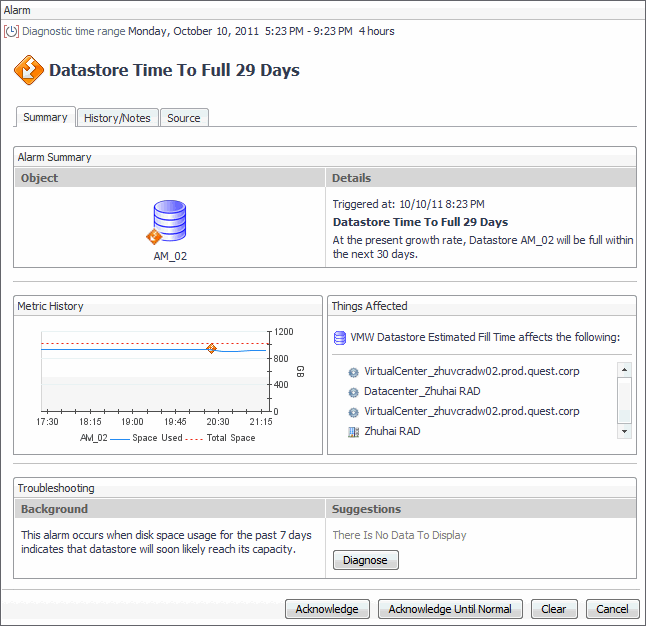 Est. Time Until Full. The estimated amount of time after which this datastore becomes full.