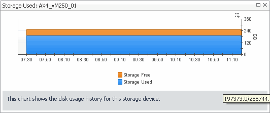 Current Utilization, Allocated. The percentage of the total disk space that is allocated to the virtual machines associated with the selected datastore.