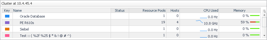 However, when you select a cluster container, the Summary tab shows a Related Objects view that lists all of the clusters in that container and provides pertinent details about each one.