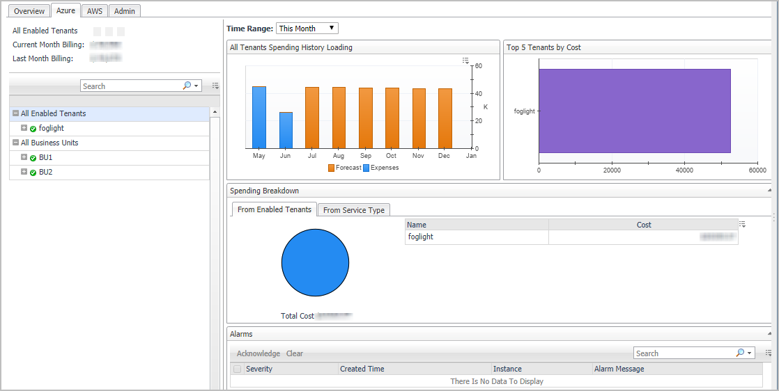 Click Cost on the top of the Cloud Manager dashboard to navigate to the Cost tab.