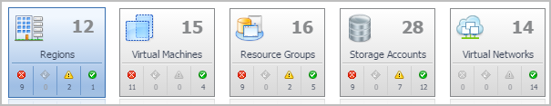 The Monitoring tab includes the following tiles: Regions, Virtual Machines, Resource Groups, Storage Accounts, or Virtual Networks.  |