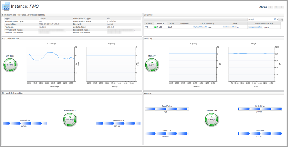 Lists the alarms generated against the selected EC2 instance. | |||