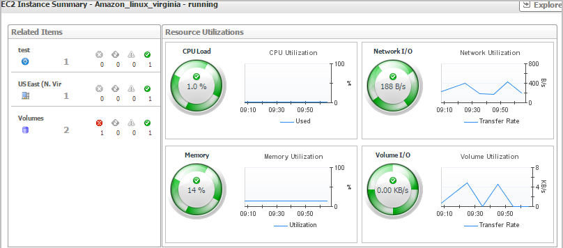 The Explore - Instance view appears when you click Explore in the EC2 Instance Summary view.