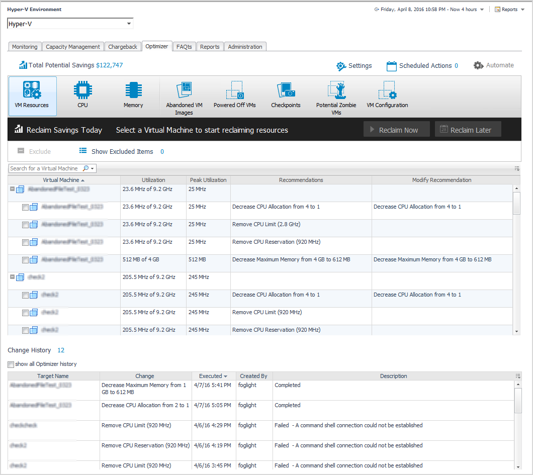On the navigation panel, under Dashboards, click Hyper-V > Hyper-V Environment > Optimizer tab.