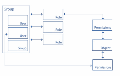 A group can contain one or more users or other groups. Roles are assigned to users through groups.