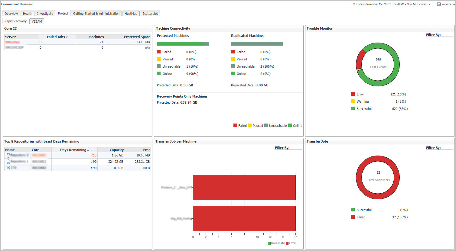 Protected Machines. Shows the connectivity state of machines protected on the monitored Rapid Recovery core.