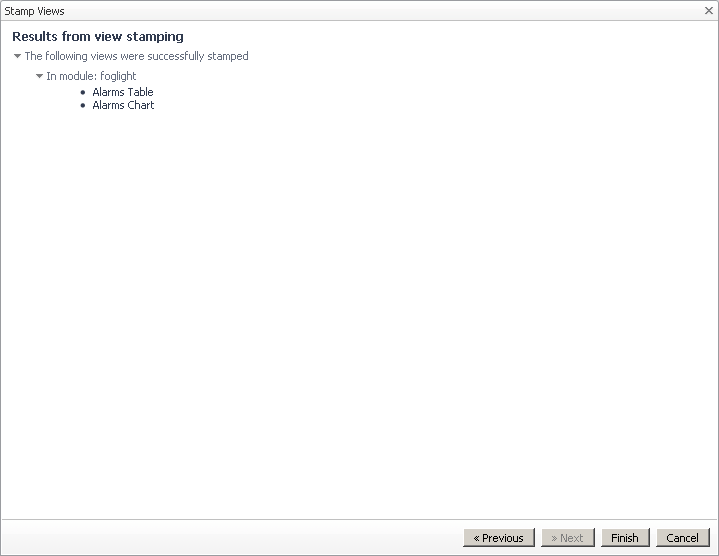 The Stamp Views wizard appears, showing a list of properties common to all views that are currently selected for stamping.