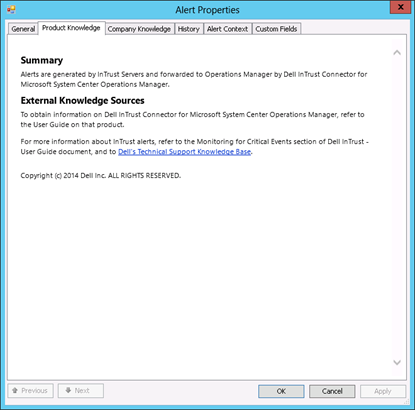 Note: When an alert is forwarded to Operations Manager, the Alert Source field value is set to Quest InTrust Connector on <Connector_host_name>.