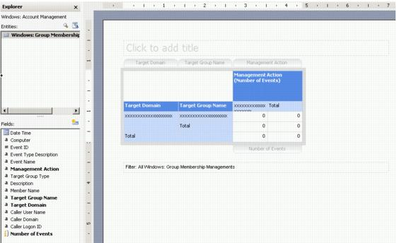 1. In Report Builder, select the InTrust model, and select its Windows: Account Management perspective.
