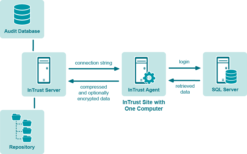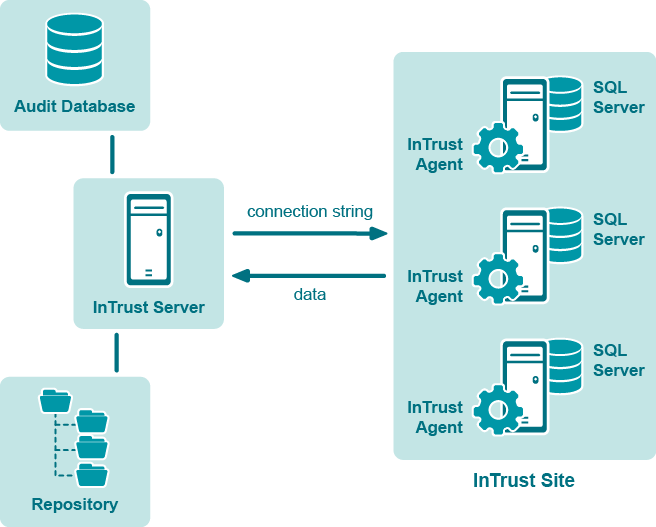 You can use a site that includes one InTrust agent computer connected to one SQL server. To collect from multiple SQL servers in this way, create a similar site for each SQL server.
