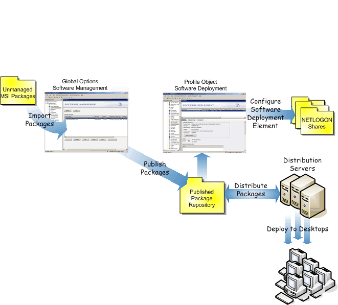 The Desktop Authority Software Distribution object is used to manage a repository of Microsoft Windows Installer (MSI, MST, MSP) packages.