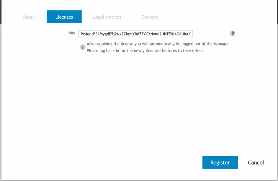 You must register your new license key after a purchase to remove the evaluation time period or if the evaluation has expired. A license key is provided at the time of purchase. All configurations made during the trial are still available after the product is registered. You can continue using all features immediately following the registration process.