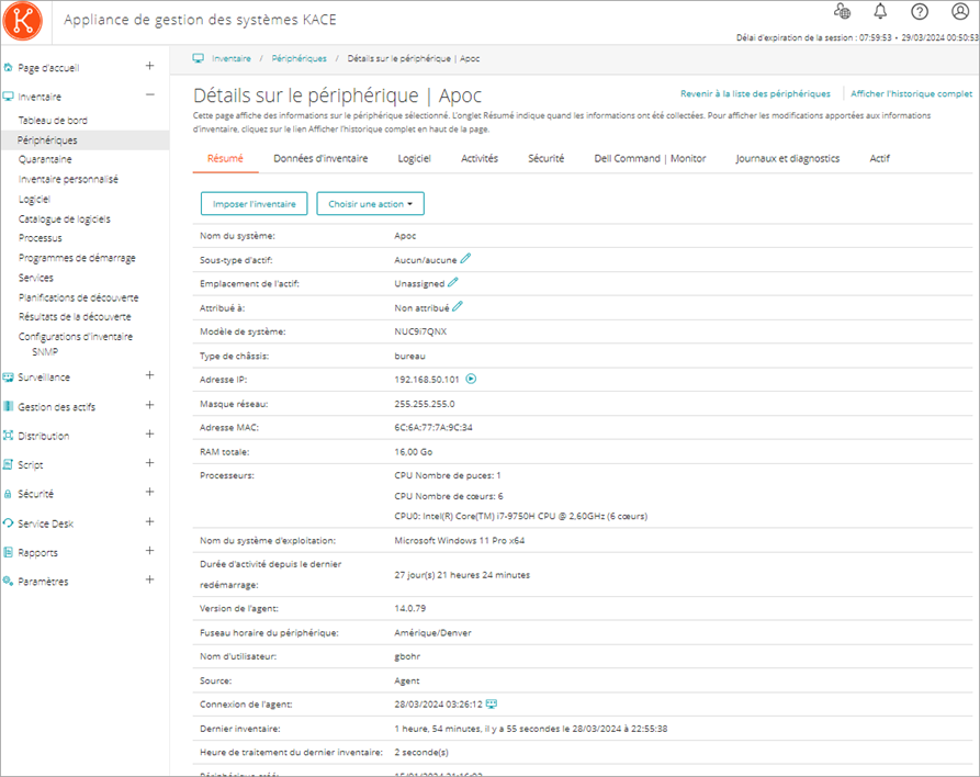 Gestion des périphériques, logiciels, processus, services, analyses et autres éléments de votre réseau. Voir :