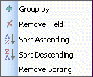 The following illustration shows the grouping options that might appear when you click the column header. The options that appear depend on the current settings.