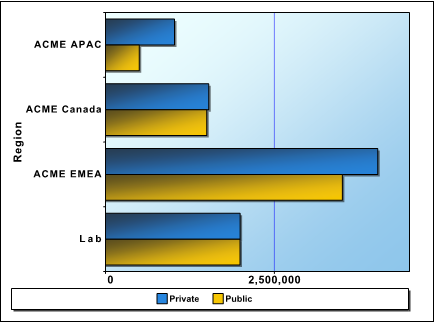 Each category has a bar for each data value. The legend title contains the field display-name.