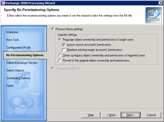 • Reassign object ownership and permissions to target users—Select this option to re-assign permissions and ownership set to the Exchange objects to the new (target) user accounts.
