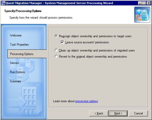 NOTE: If two source users were merged to one target user during migration, and if only one of the source users had permissions on some objects, then, after SMS update and reverting permissions back, both users would have permissions on these objects (that is, users would have common permissions). |