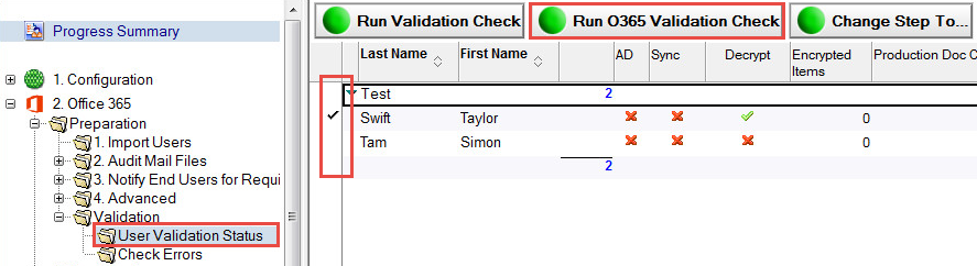 2. Select one or more entries and click the Run O365 Validation Check button: