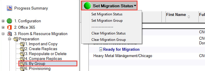 Before moving to the next step, if you need to set or clear migration statuses, select users in the Data Pane and then click the Set Migration Status button: