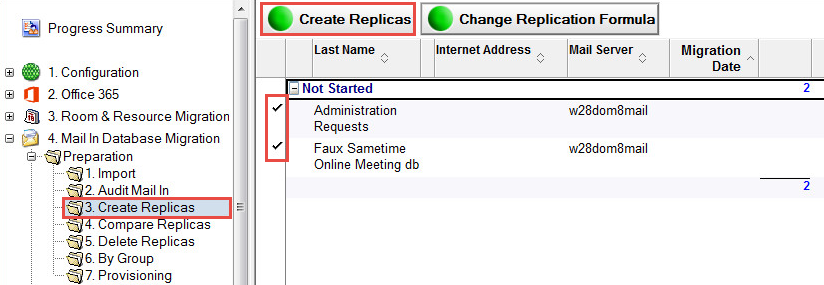 Expand the Mail In Database Migration | Preparation | Create Replicas view
