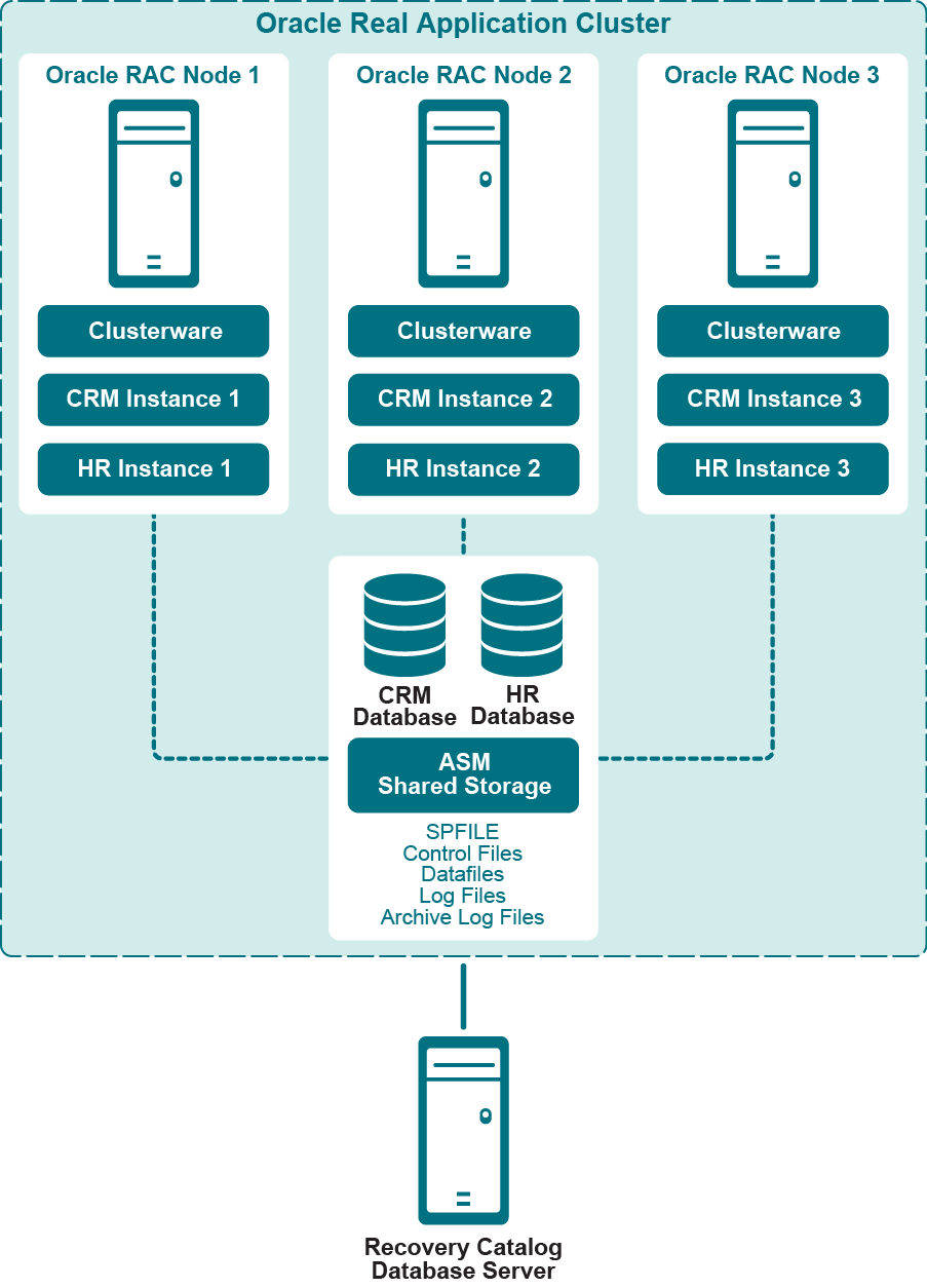 Separate Recovery Catalog Server: Quest recommends that you store the RMAN repository in a Recovery Catalog database on a server outside the Oracle RAC environment. For more information, see Creating the RMAN repository.