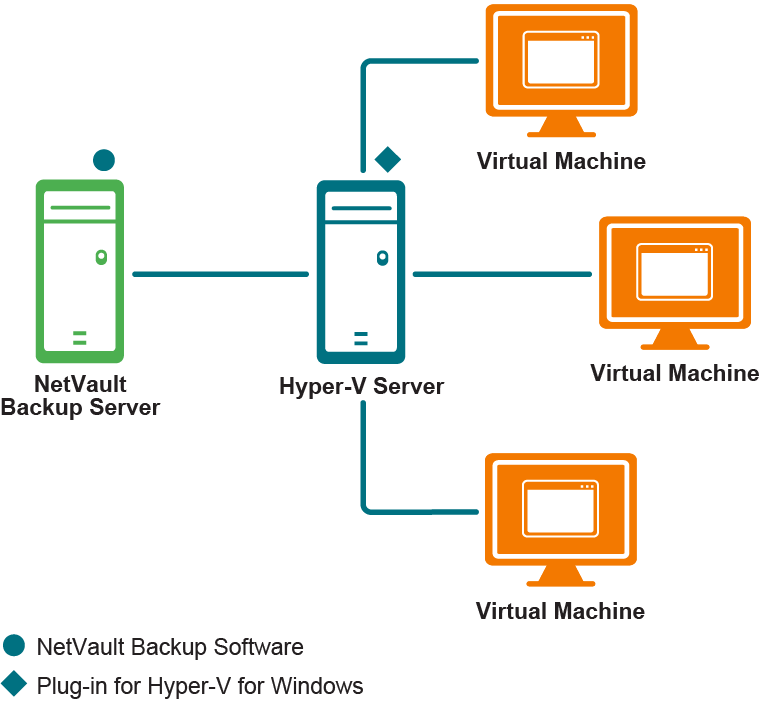 Das Bereitstellen des Plug-ins in eigenständigen, Cluster- (High Availability-) und SMB-Umgebungen ist fast identisch, da Plug‑in for Hyper‑V auf dem Hyper-V-Server installiert ist. Der Hyper-V-Server ist der physische Computer, der die VMs hostet – das Plug-in ist nicht auf jedem der geschützten VMs installiert.