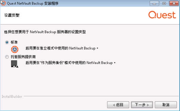 托管服务提供商:此选项允许您使用 NetVault Backup 服务器并提供备份即服务给客户端或客户。 |