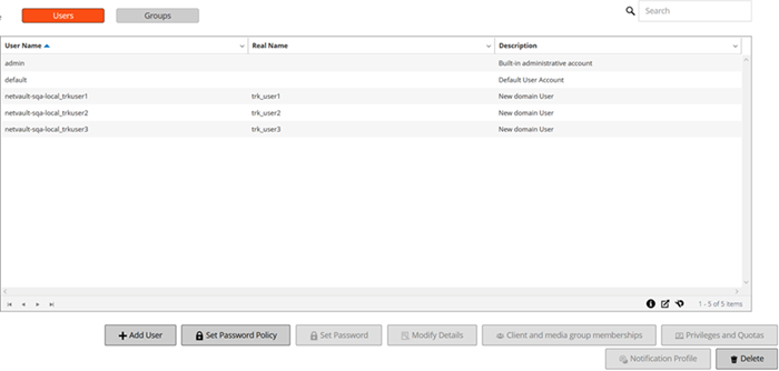 참고: NetVault Backup 서버에서는 사용자 추가 절차를 완료하지 않고 종료할 경우 사용자 계정을 삭제하지 않습니다. 사용자 계정이 필요하지 않으면 사용자 및 그룹 계정 관리 페이지에서 이를 수동으로 삭제해야 합니다. 자세한 내용은 사용자 계정 삭제을(를) 참조하십시오.