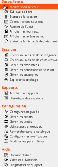 Sélectionnez cette option pour créer et planifier des sessions de sauvegarde. Pour plus d'informations, voir Création de sessions de sauvegarde.