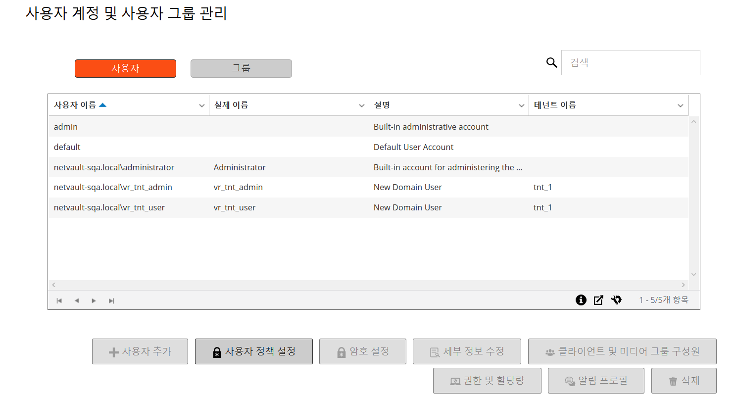 사용자 계정 및 그룹 관리 페이지에서 사용자 계정을 생성할 수 있습니다. NetVault Backup에서는 관리자만 사용자 계정을 생성하고 관리할 수 있습니다.