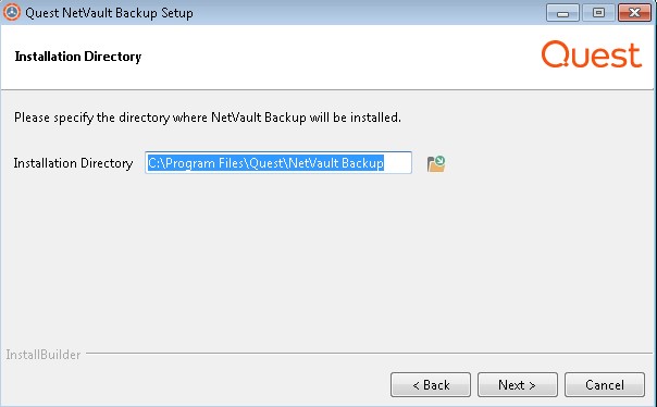 在 Windows 上:C:\Program Files\Quest\NetVault Backup 或 C:\Program 文件(x86) \Quest\NetVault Backup