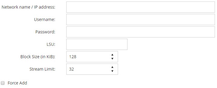 Si l’unité est déjà ajoutée à un autre serveur NetVault Backup portant le même nom, sélectionnez le Forcer l’ajout case. Cette option peut être utile si vous avez exécuté une récupération après sinistre pour reconstruire le serveur NetVault Backup.