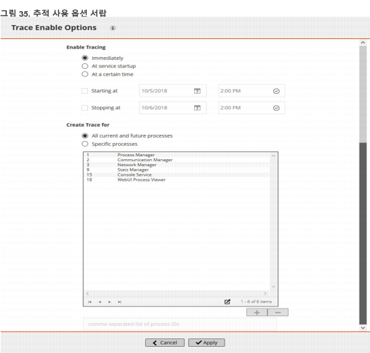구성 진단 추적 설정 페이지에서 서비스 시작 시 추적 활성화 에 있는 확인란 추적 구성 옵션 대화 상자.