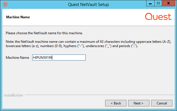 By default, NetVault uses the OS-assigned machine name. For more information about machine names, see Determine NetVault name and password.