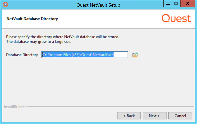 In the Database Directory box, specify the installation path for the NetVault Database.