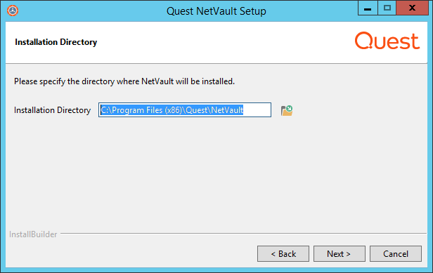 When installing the NetVault Server, the NetVault Database Directory dialog box is displayed next. This dialog box is not displayed during client installations.