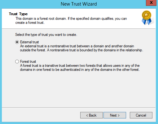 6. On the Trust Type page click on External trust, click Next.