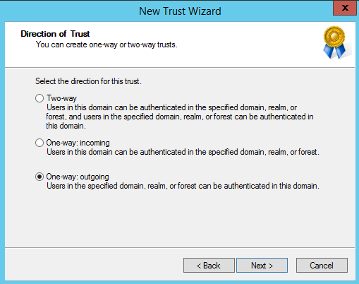 7. On the Direction of Trust page choose One-way: outgoing, click Next.