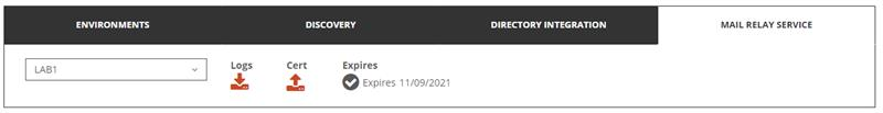 Existing certificates can be viewed by selecting Certificates from the left navigation menu. The Mail Relay Service page opens.