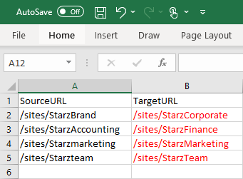 - In the SourceURL column keep only the sites that you want to map. Ensure that only relative URLs are used.