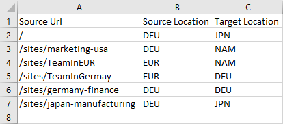 If you want to migrate SharePoint sites to a geo located target tenant, you must map the discovered source tenant sites to active geo locations in the target tenant using a CSV file. This is a two-step process: