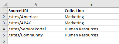 NOTE: CSV file names with non-ASCII characters are not supported. SharePoint sites in the CSV that have not been discovered cannot be added to a collection.