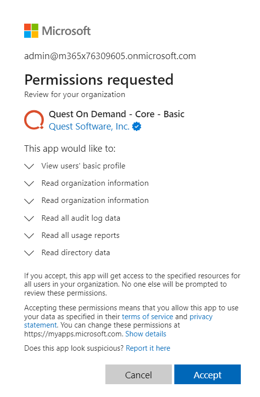 On Demand Recovery requires access to the customer’s Microsoft Entra ID and Microsoft 365 tenants. The customer grants that access using the Microsoft Admin Consent process, which will create a Service Principal in the customer's Microsoft Entra ID with minimum consents required by On Demand Recovery (Groups and Users).