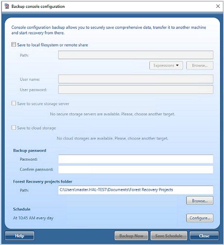 With Forest Recovery Console Configuration Backup and Restore you can backup your Forest Recovery Console settings and project files.