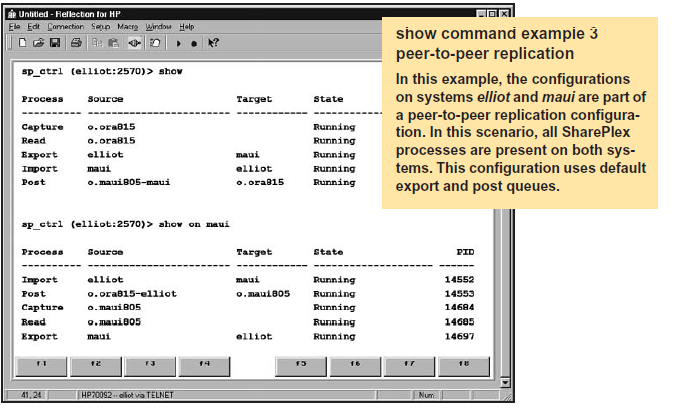 Use the show command to view the replication processes for an instance of sp_cop and the path the data is taking.