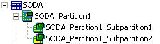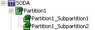Prefix for default subpartition names—Enter the default name to use for subpartitions. (SP is the default.) A sequential subpartition number is added at the end of each name; the parent partition name is added at the beginning. If you enter Subpartition as the default name, new subpartition names look like this in the wizard’s Object list: