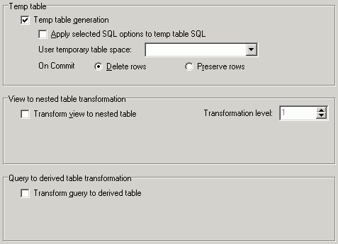 Specify whether to apply the selected SQL options to the generated temp table SQL.